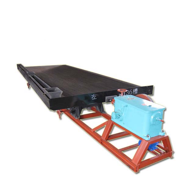 選礦搖床又稱玻璃鋼搖床、6-S搖床、礦泥搖床,是用于選別細粒物料的主要重力選礦設備之一,可用于粗選、精選、掃選等不同作業,選別粗砂(2-0.5mm)、細砂(0.5-0.074mm)、礦泥(-0.074)等不同粒級。根據設計結構可分為固定式選礦搖床、小槽鋼選礦搖床和大槽鋼選礦搖床,搖床面又分為直槽和雙曲波刻槽兩種。